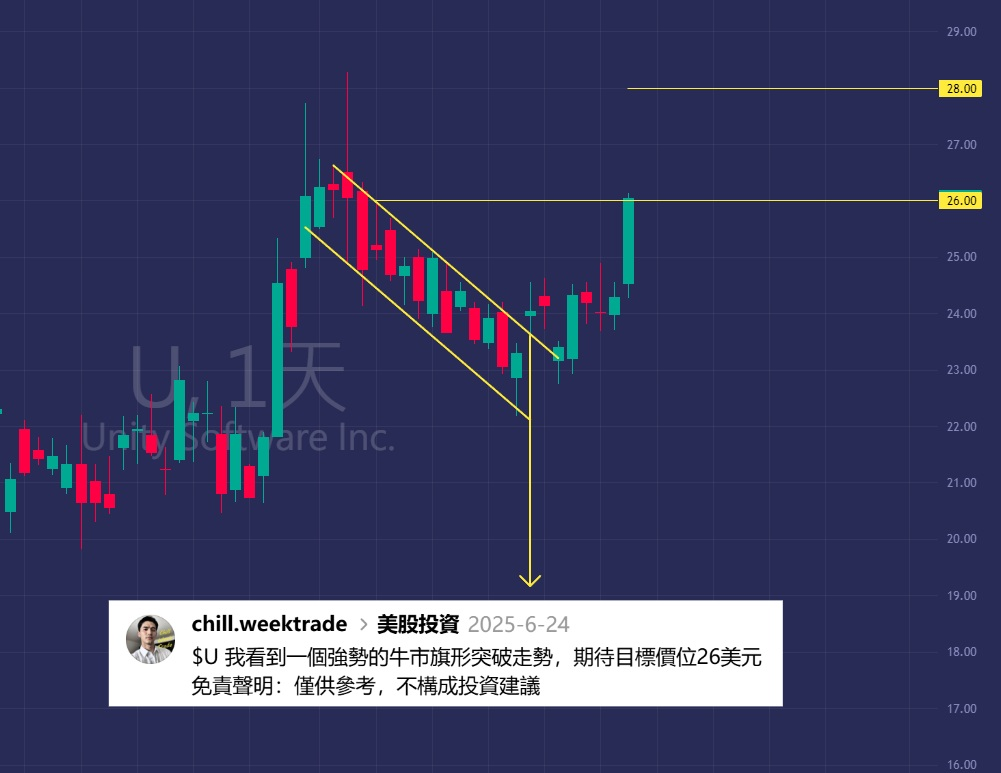 我上週已预测的突破走勢,今日已經完成爆發!26美元目標達成,仍持有8/15看漲期權