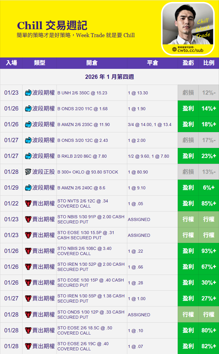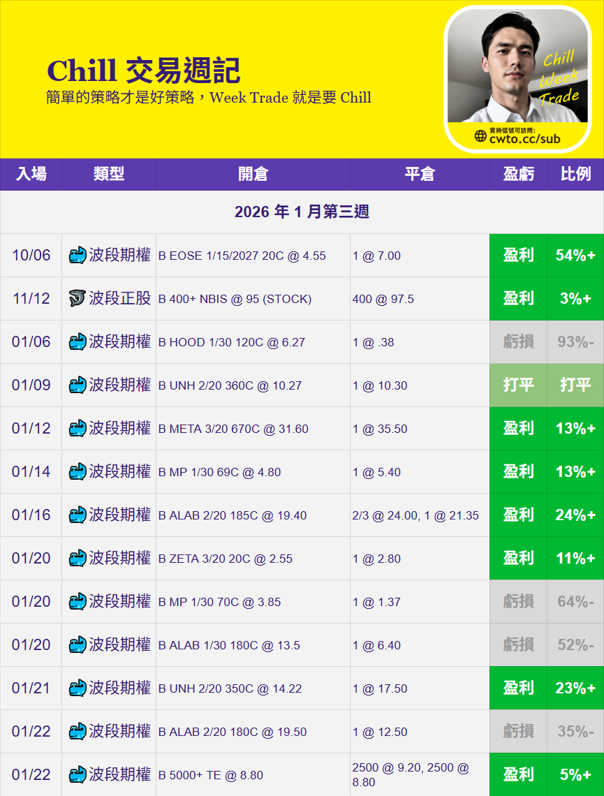 ChillWeekTrade 歷史交易統計(2026)